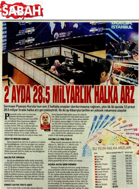 Yılın ilk 2 ayında aralarında Bulls GSYO´nun olduğu 12 şirket 28.5 milyarlık halka arz gerçekleştirdi. İlk 2 ay itibariyle tarihin en yüksek rakamına ulaşıldı.