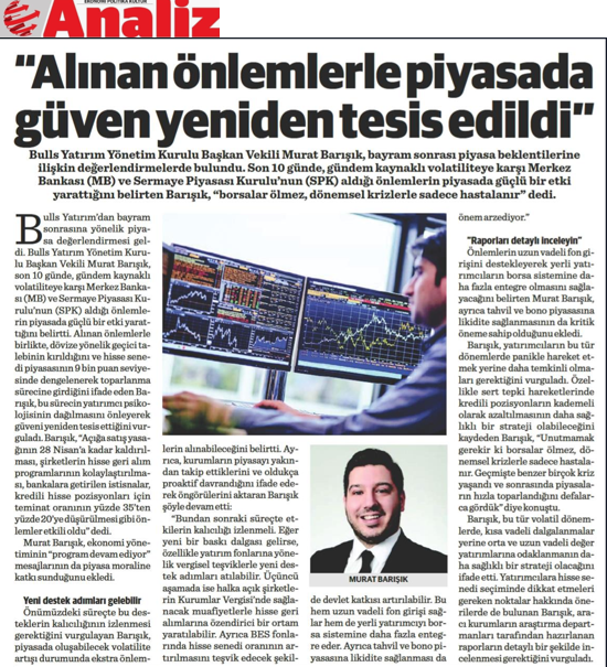 Galata Yatırım Yönetim Kurulu Başkan Yardımcısı Murat Barışık, Ramazan Bayramı sonrası piyasaya dair değerlendirmelerde bulundu.